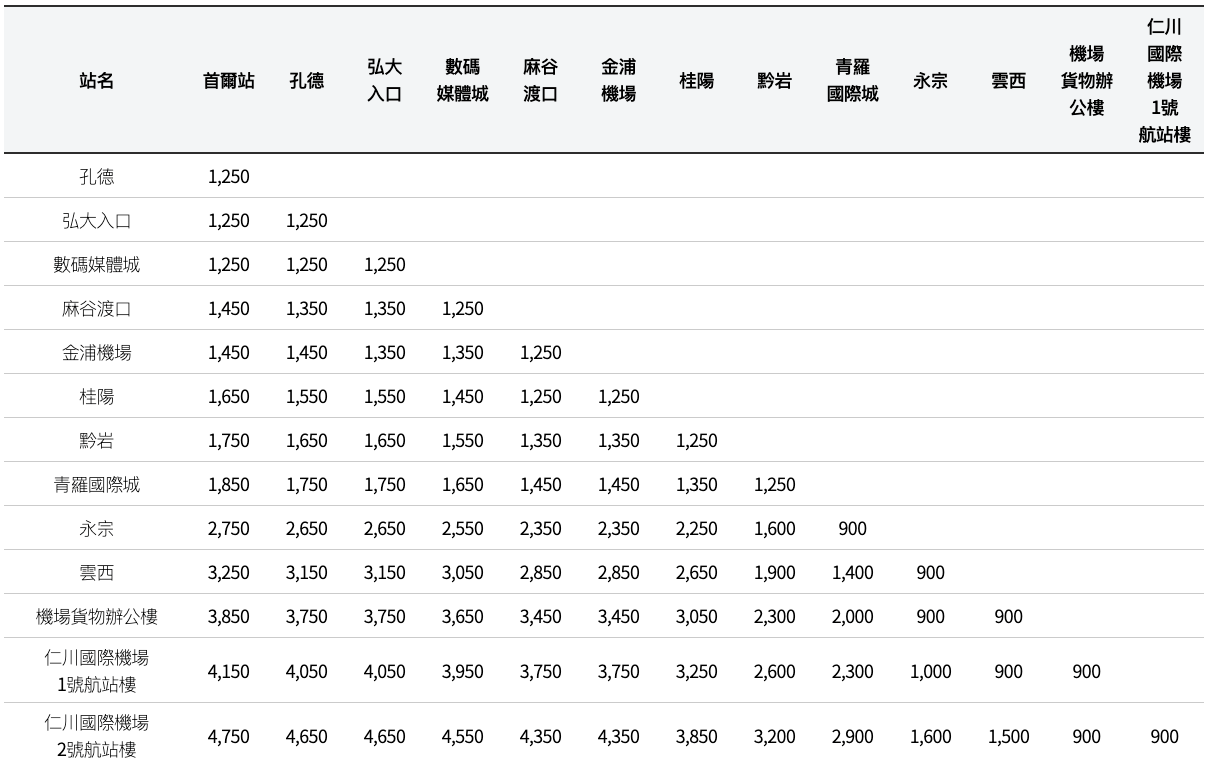 機場快線有分普通跟直達兩種不同,普通列車總共會停靠12站之多,直達則是弘大及首爾站。