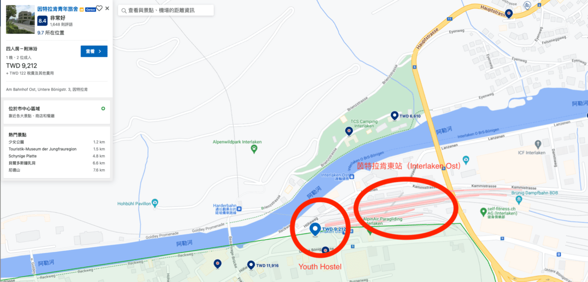 以這個價位在茵特拉肯我覺得很值得,離車站近就可以玩比較晚或是去更多地方玩,如果想要住在更漂亮的地方,就要前往像是溫根(wengen)或是勞特布魯嫩(Lauterbrunnen)或是格林德瓦(Grindelwald),出門就是草原。
