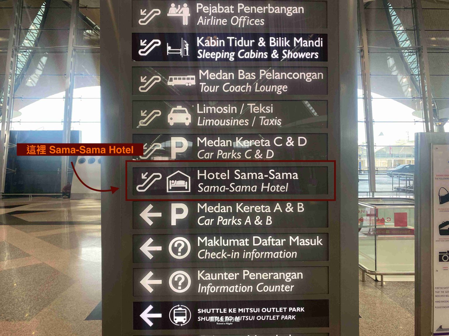 出來看到指示牌,確認有Sama-Sama Hotel,沒錯!繼續走,走到牆壁就好(椅子處),不用左轉!!